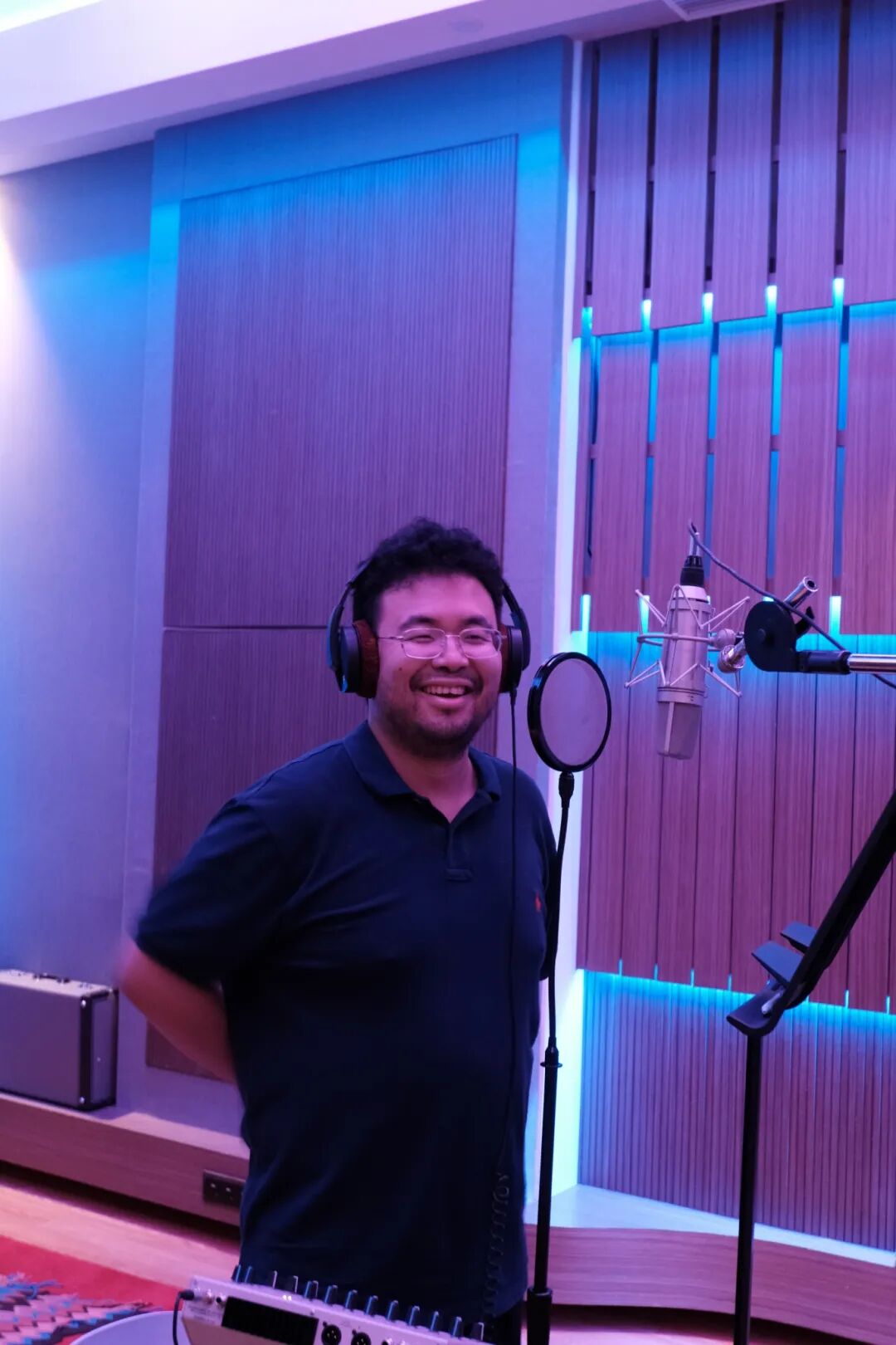 词曲作者经历了一首歌从“毛坯”到“精装”的过程,听到最终的成品,会是怎样的感受?宋老师说:“第一遍听,心情很平静,毕竟从若干版小样到A、B段风格逐步确定,再到录制,我都参与了。我自己很喜欢这首歌,耐听,大家多听几遍,会觉得越来越好听。”但当易凝老师谈感受时,他却有点面露难色。“估计是听‘麻’了。抛开创作过程不说,录制的时候,他就听了五六个小时。再加上后续选段落,修音,制作……受累了。”宋老师打趣道。