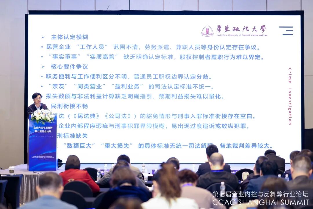 10月31日,企业内控与反舞弊第七届行业论坛(CCACSHANGHAISUMMIT)在上海隆重举行。本届论坛由长宁区司法局指导,上海市犯罪学学会、华东政法大学、中国犯罪学学会企业犯罪防控专业委员会、上海星瀚律师事务所共同主办,是“上海市社会科学界联合会第十九届(2025)学会学术活动月”项目,由上海市浙江商会法律委员会、理购(上海)企业服务有限公司联合支持。